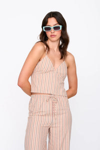 Gesteepte haltertop met open rug. Op de rug zijn twee striklintjes. Super leuk voor de zomer, op vakantie, op festivals, ...