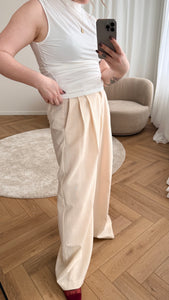 Highwaisted broek met rechte pijpen. In de trendy vanille-gele kleur met klein pinstripe patroon.