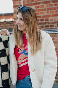 Super zachte teddy jas met knopen en een opstaande kraag, afgewerkt met steekzakken.