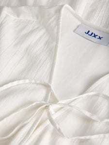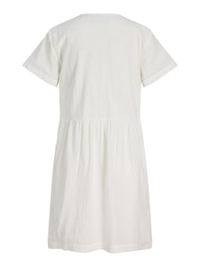 Wit kleedje met V-hals en korte mouwen. De rok is gevoerd.