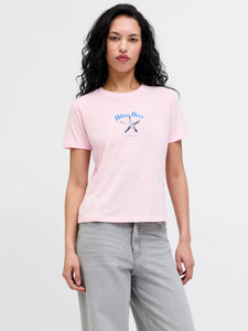 Een roze regular fit T-shirt met korte mouwen en een vintage geïnspireerde print van een zeester en de tekst “Blue Bay”. De retro 90’s vibe zorgt voor een speelse en zomerse uitstraling. Gemaakt uit een zachte stof en makkelijk te combineren met je favoriete jeans, short of rok.