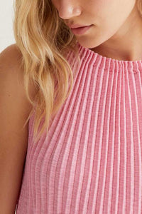 Deze maxidress in frisse roze heeft een hoge hals en subtiel plissé-detail voor een elegante touch. Mega cute en perfect voor zonnige dagen!