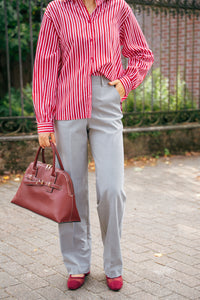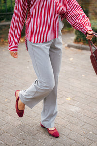 Lichtgrijze pantalon afgewerkt met steekzakken. Heel comfortabel! Zelfde model als onze bestseller Mary pants black.