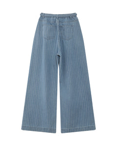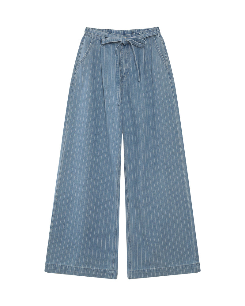 Dé populaire Pompon jeans is BACK! Deze keer in een gestreepte versie. Zo graaf! De broek heeft een rekker in de rug. Zo zit die altijd perfect aan de taille! Draag het zo of als set met de Vita denim shirt.