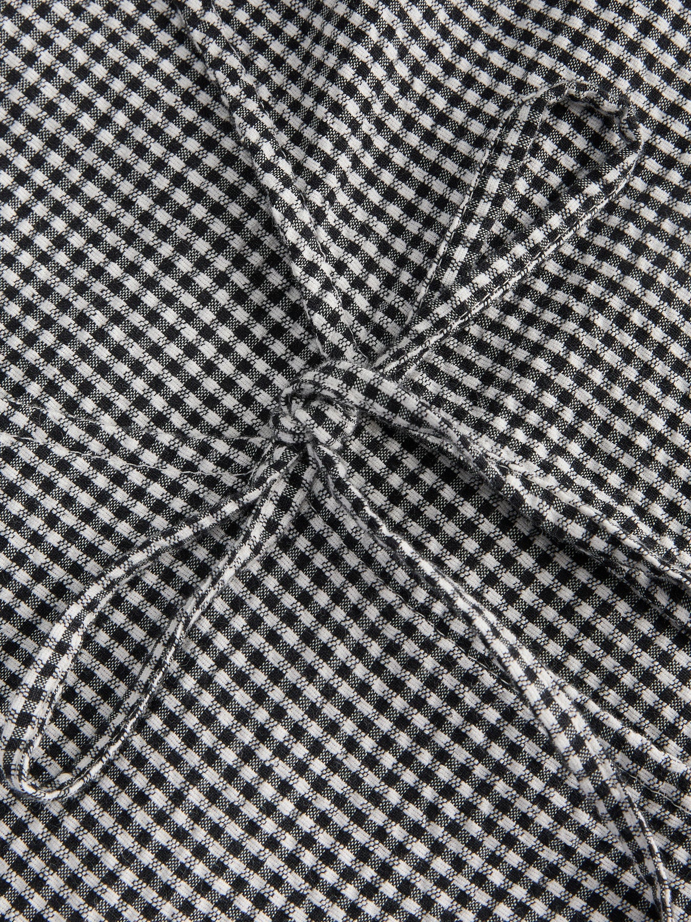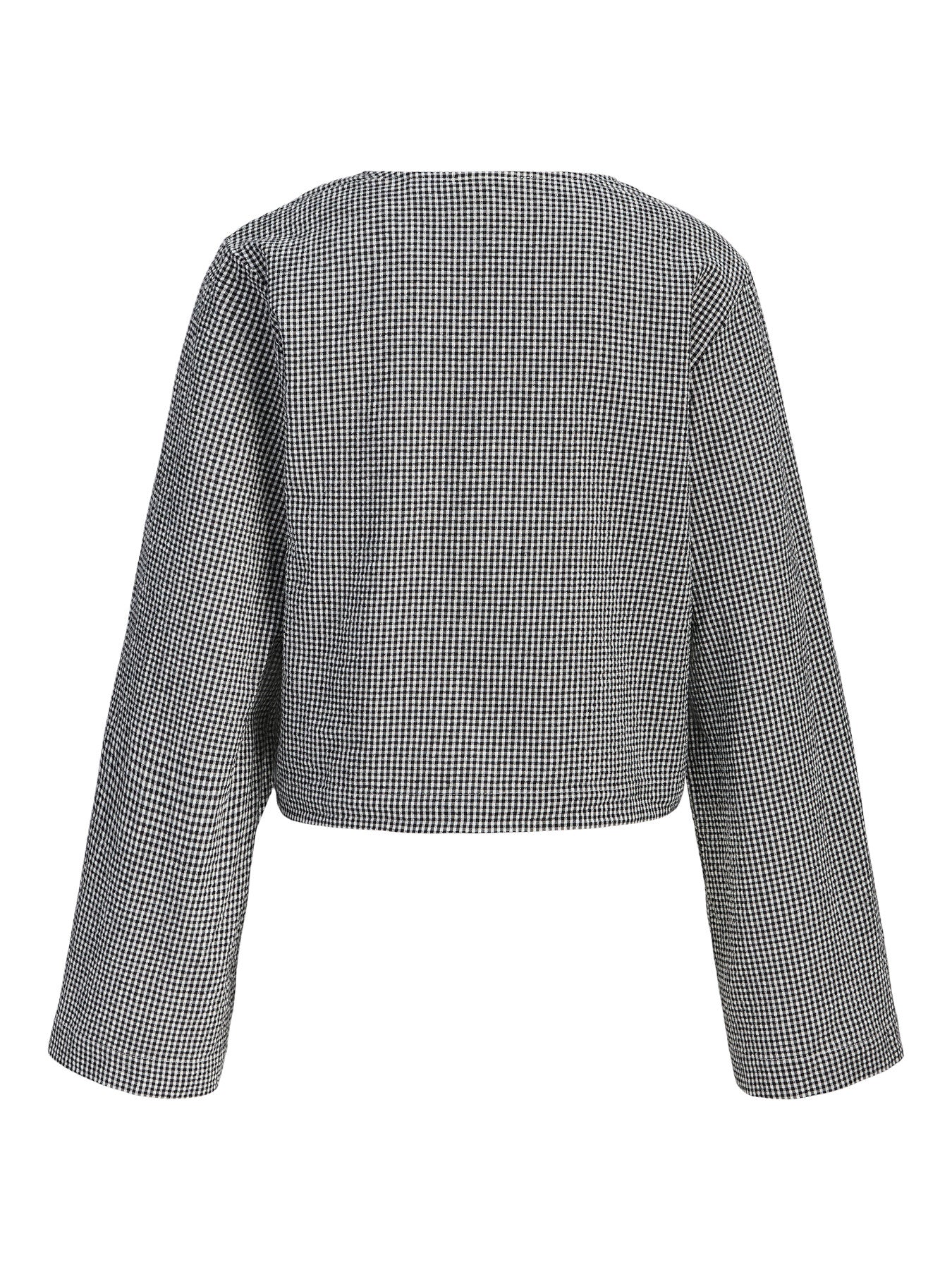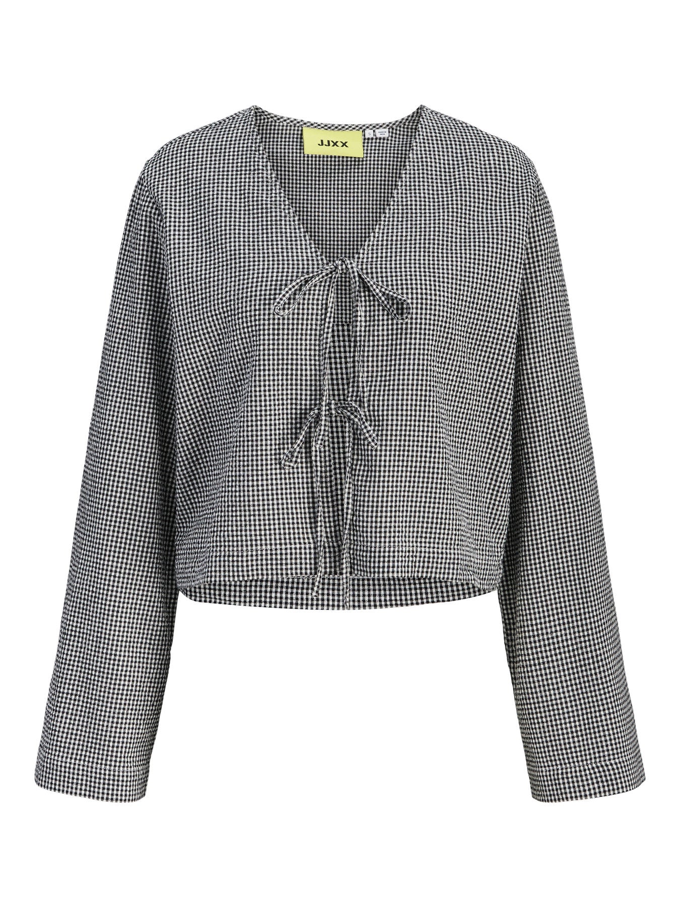 Geruite top met lange mouwen. Heel schattige strikjes vooraan. Deze combineer je heel leuk met de bijpassende Zoe short of Zoe maxiskirt.